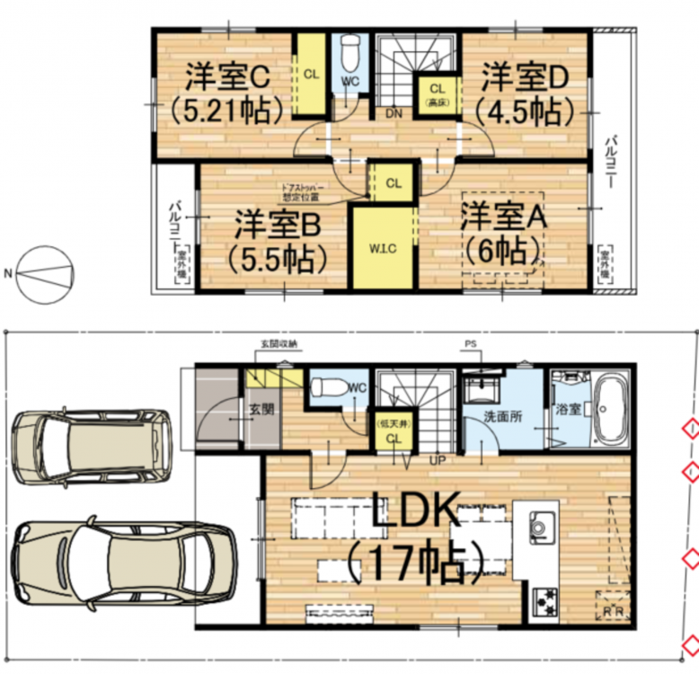 - システムキッチン、カウンターキッチン、食器洗浄乾燥機、シャンプードレッサー、洗浄便座、浴室乾燥機、追い焚き、ウォークインクローゼット、モニタ付インターホン、1BOX駐車可、駐車場2台分、トイレ2箇所